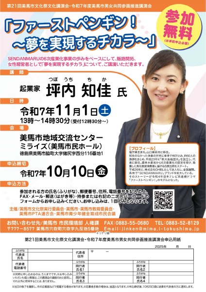 第21回美馬市文化祭文化講演会・令和7年度美馬市男女共同参画推進講演会にて登壇させていただきます。
