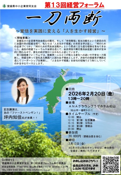 愛媛県中小企業家同友会 第13回経営フォーラム、にて記念講演をさせていただきます。
